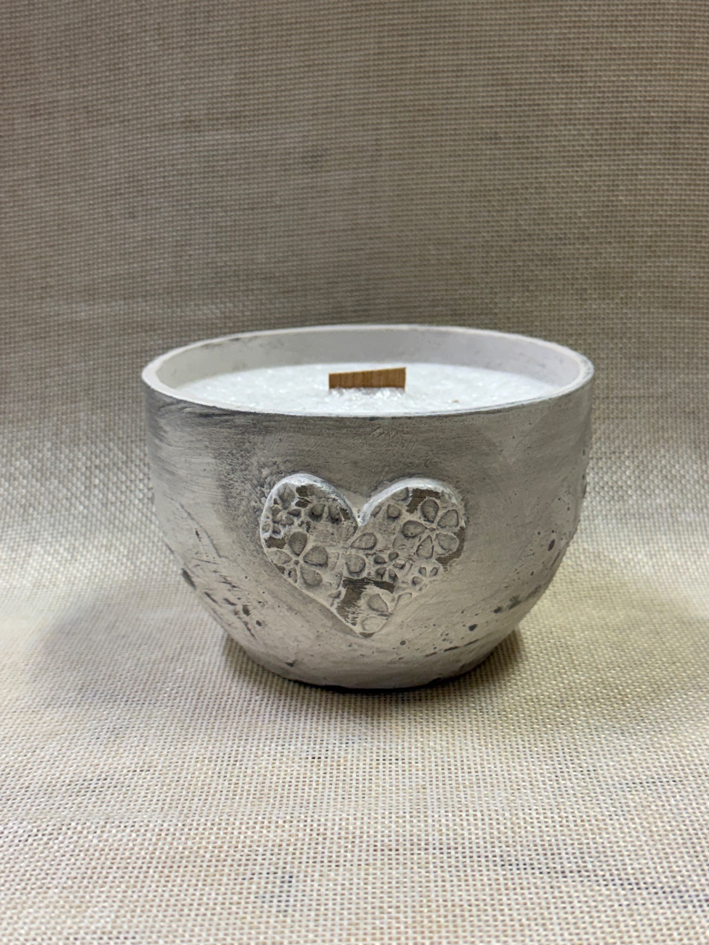 Sviečka veľká LIS srdce - bielo šedá