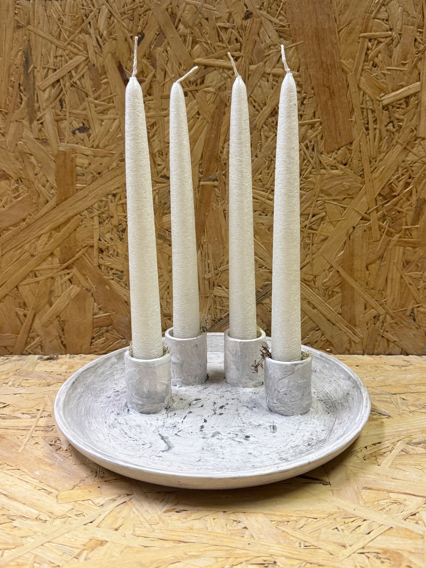 Tanier na kónické sviečky po obvode - bielo šedá